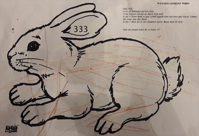 Wir haben so viele Kaninchen im Stall und ausgerechnet das zutraulichste verschwindet. Ob die Tür nicht richtig zu war? Vielleicht hatte er auch Komplizen. Als ich heute sein Fehlen bemerkte zuckte mein Kleiner nur mit den Schultern und meinte: 'weeeeg?'