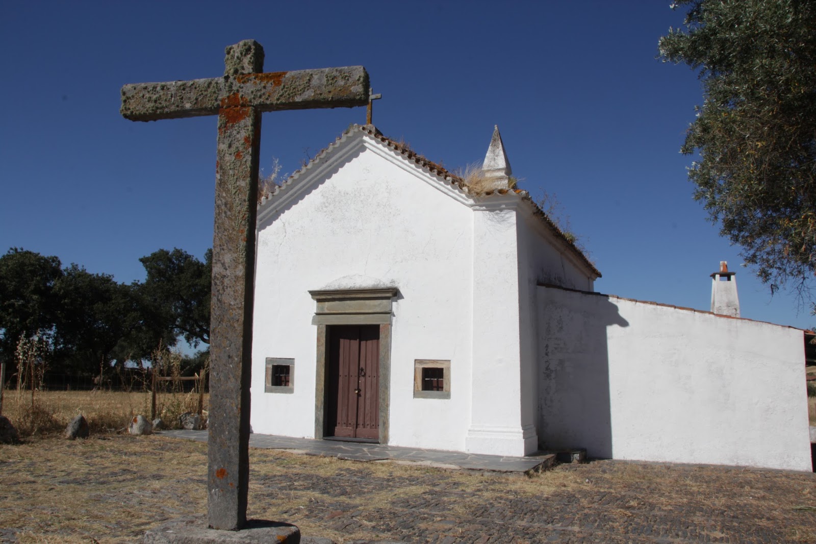 “Esta capela de traça quinhentista, é uma típica construção das pequenas igrejas rurais que povoam o Alentejo, composta por nave e cabeceira com cúpula hemisférica, rebocada e caiada.