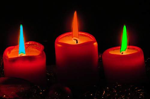 Tipp: Leider können wir diese farbigen Flammen nicht mit einer Kerze erzeugen, da diese Flamme nicht heiß genug wird und das vorherrschende Gelb alles überdeckt. Wer aber einen Gasbrenner besitzt, kann etwas experimentieren: