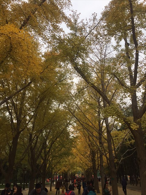 Beijing ginkgo tree planting a long history, many places have hundreds of years or even a thousand year old ginkgo tree. Outside westth gate and inside north gate of Temple of Earth park,ginkgo trees neatly arranged in two rows。 Each to the late autumn, the road will be the golden ginkgo leaves sprinkled a gorgeous and like magic general pretty shocking.
