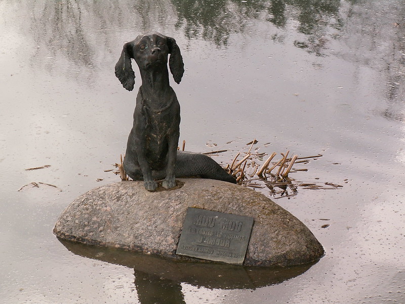 Cette statue offerte par l'ambassadeur de Russie en 2013 remplace la précedente, Moumou, volée en 2011.