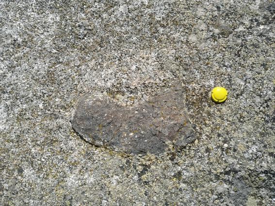 Les taques fosques que s’aprecien a la roca (de vegades sobresortint) són roques ígnies preexistents (semblants als granits o a les granodiorites) en el moment de formar-se la granodiorita i s’anomenen enclavaments. Tenen una forma arrodonida perquè es van anar desgastant dins del magma. Quan aquest nòduls són més resistents a l’erosió que la granodiorita queden sobresortint de la roca encaixant.
