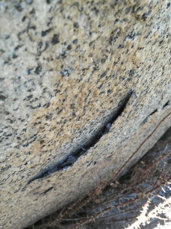 Foto 12: La fractura vertical s’aprecia a la banda inferior dreta de la imatge, a la base de la roca.