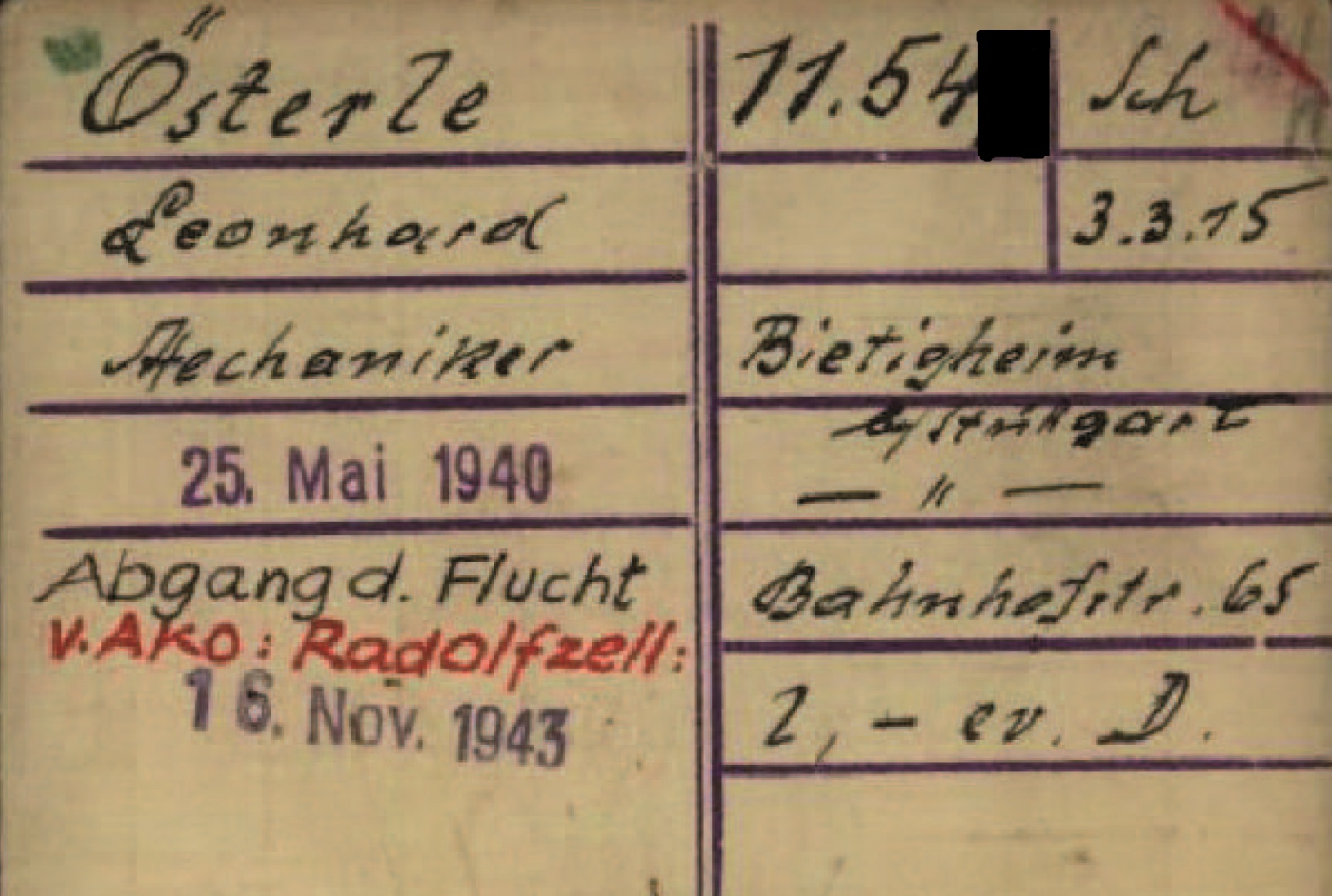 Leonhard Oesterle (*1915), Oldrich Sedlácek (*1919), Jakob Dörr (*1916) und Fritz Klose waren vier von 120 Häftlingen, deren Spuren bei diesem Cache nachgegangen wird. Leonard Oesterle war wegen seiner Überzeugung 1936 in Stuttgart verhaftet worden. Zusammen mit seinem tschechischen Freund Oldrich Sedlácek, den er während seiner Gefangenschaft bereits in Dachau kennengelernt hatte, war ihm 1943 von Radolfzell aus die Flucht geglückt. Oldrich Sedlácek ging im Anschluss an die Flucht nach London, wo er noch in den Dienst der tschechischen Armee eintrat, er verstarb 1949 an Tuberkulose.