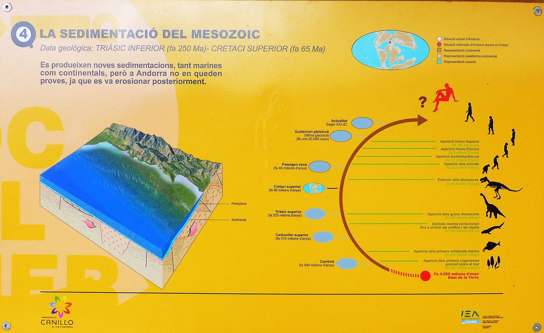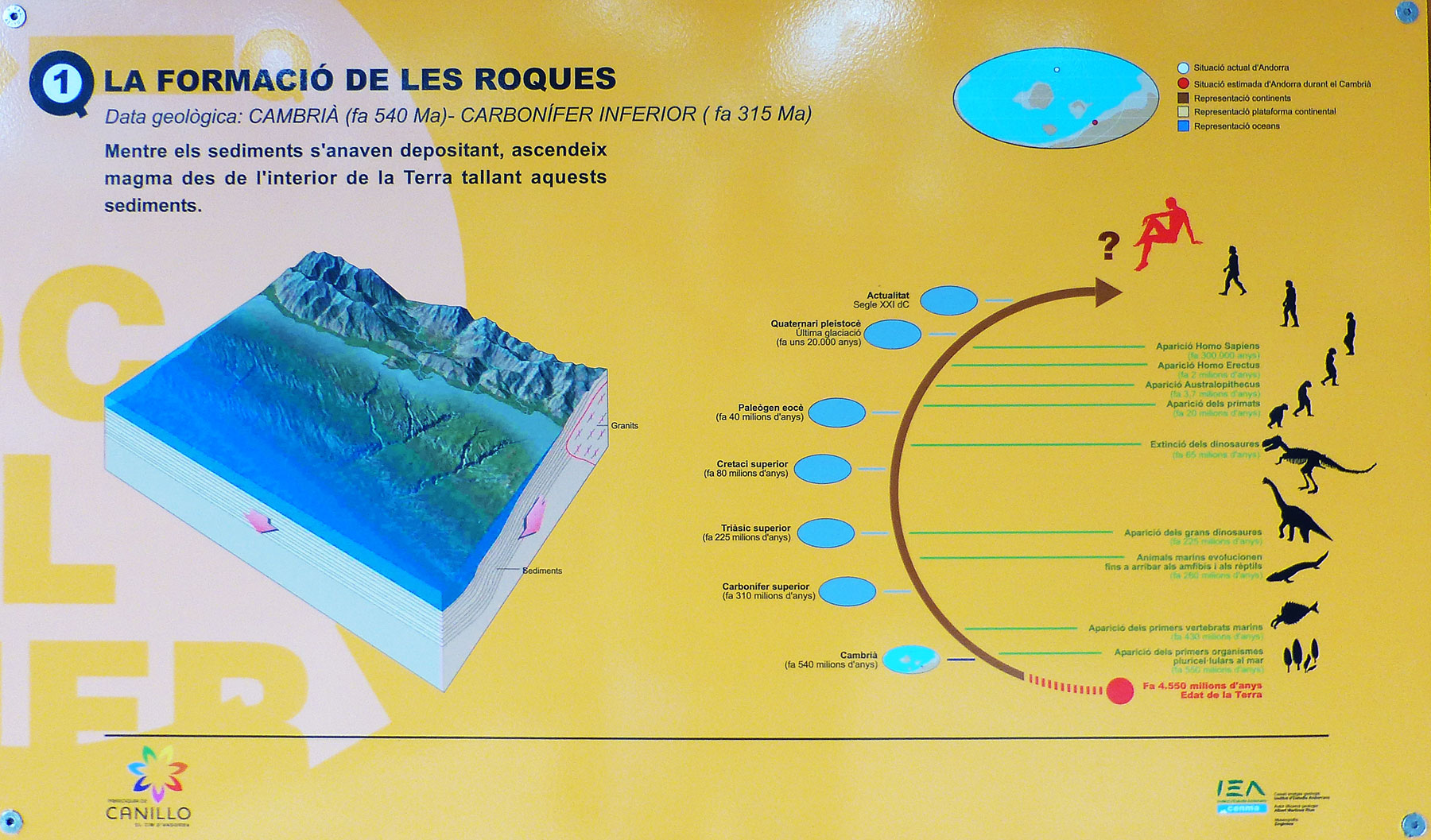 B - Desde hace cuantos millones de años ò desde que periodo geologico de la tierra, Andorra, geograficamente ya ocupaba en el globo terraqueo su posicion actual ?.