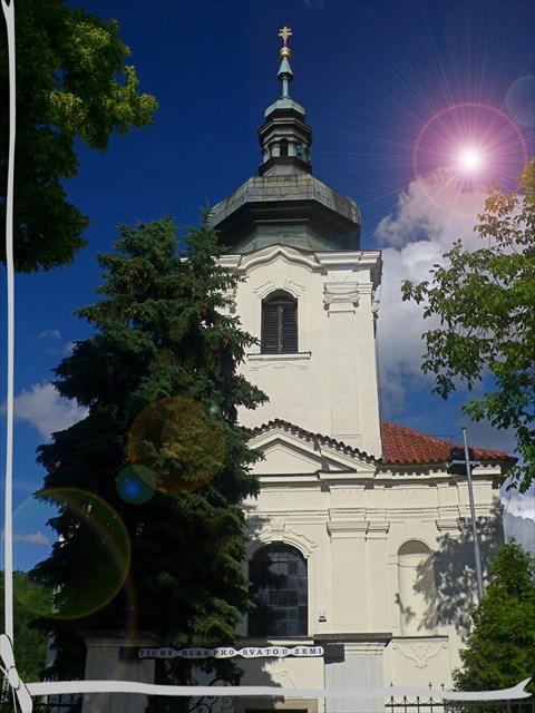 Kostel, jež prošel velkou přestavbou roku 1903, je zapsán v seznamu nemovitých kulturních památek a je spravován Římskokatolickou farností v Roztokách.V kostele jsem pokřtěn, takže vězte, mé ´druhé křestní jméno je Rudolf, a jaké je to vaše? Měli by jste ho mít po svém KMOCHÁČKOVI.