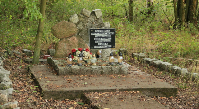 Pomnik upamiętniający śmierć dwunastu osób, które zginęły nieopodal w pierwszych dniach września 1939 r., kiedy to kolumnę uciekinierów podążających z Golubia-Dobrzynia w kierunku Rypina ostrzelały z powietrza hitlerowskie samoloty. Zabite osoby pochowano na miejscu ataku w zbiorowej bezimiennej mogile. Po zakończeniu II wojny światowej zwłoki ekshumowano i pochowano wraz z pięcioma innymi ofiarami we wspólnym grobie.