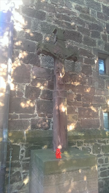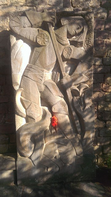 Nachdem du den Ausblick genossen hast, geht es los in Richtung Kirche. Der kleine Drache ist schon vor geflogen und erwartet dich am Kreuz. Sucht hier ein eisernes Schild. Das Jahrhundert ist euer Wert A.