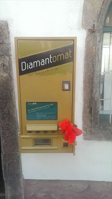 Suche hier in der Nähe den Diamantomat, dort wartet er auf dich.