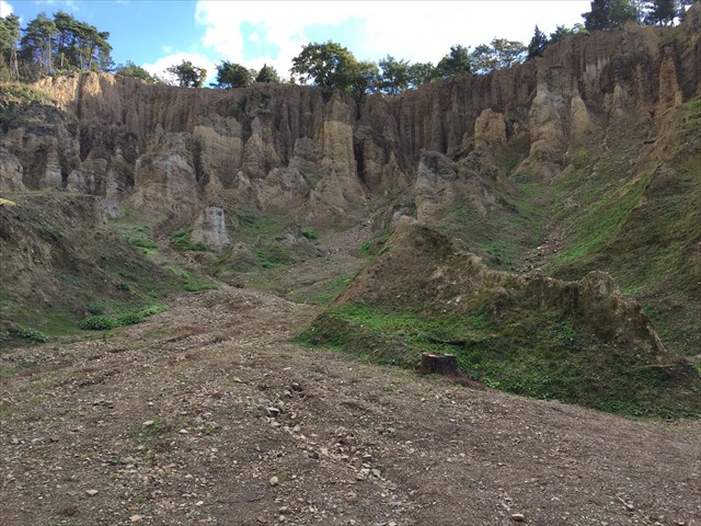 阿波の土柱は、昭和9年5月1日に国の天然記念物に指定されました。公開座標付近からは下の写真のような珍しい地形を見ることができます。