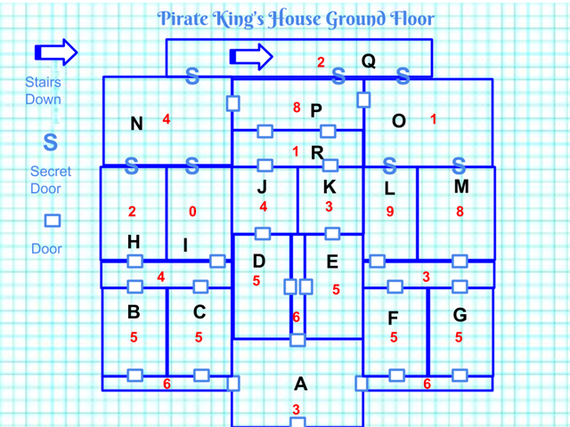 What luck - Oli finds a secret door that has clearly gone unopened for many a year (-3 thief points unless you have found the skeleton key, in which case -1 thief point). Dust coats the floor and walls. Being concealed, there is no natural light, so you light up a torch from your backpack. Light flickers, and you can see that the Pirate King prepared for visitors like you - three ghouls loom out of the dark, ravenously hungry from many years without the taste of fresh flesh. Leif leaps to the defence only to be rewarded with a hacking blow from a zombie’s rusty sword (-2 hit points). Hilgaarde reacts first and launches a fireball into their midst consuming their rotting corpses amidst their agonised cries (-2 spell points). You reassure yourself that you have given them sweet relief from their tortured existence. You discover a hidden stairway leading down underneath the old house (go to encounter S)