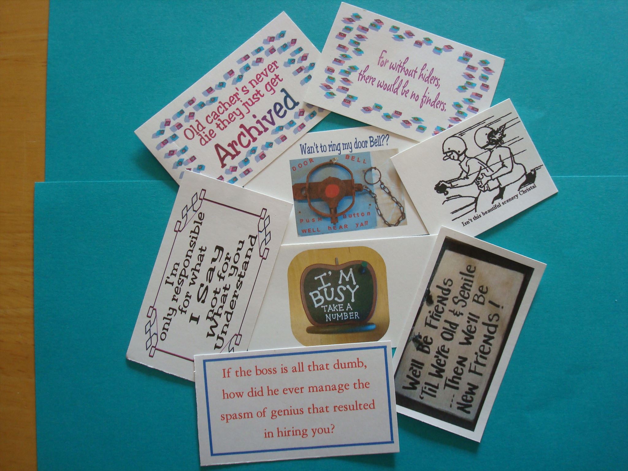 I have started the cache container out with over 40 funny and different cards.