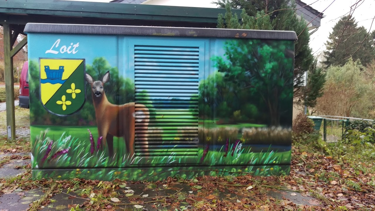 Auch in der Gemeinde Loit steht einer dieser schön bunt bemalten Stromkästen.