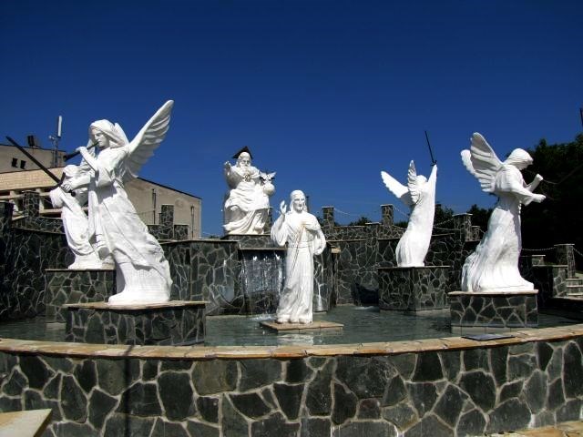 Súsošie zobrazuje druhý príchod Krista na tento svet. Štyria anjeli oznamujú túto udalosť fanfárami. Boh Otec sedí vzadu spolu s Duchom svätým v podobe holubice. Ježiš sa prechádza po vode. Voda je v pohybe. V dolnej časti námestia je oddychová zóna s množstvom lavičiek. Je tu aj pomník obetiam oboch svetových vojen a sú tu zobrazené aj historicky významné udalosti obce.
