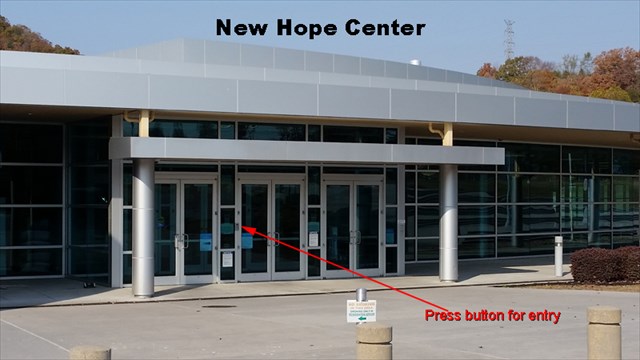 Visitor parking is available near the front entrance. There are three pairs of doors as you approach. Look for the small silver box to the right of the first pair of doors. Press the button and, if asked, say that you are here to visit the History Center. You will hear the lock click and push on the door to the right of the button.