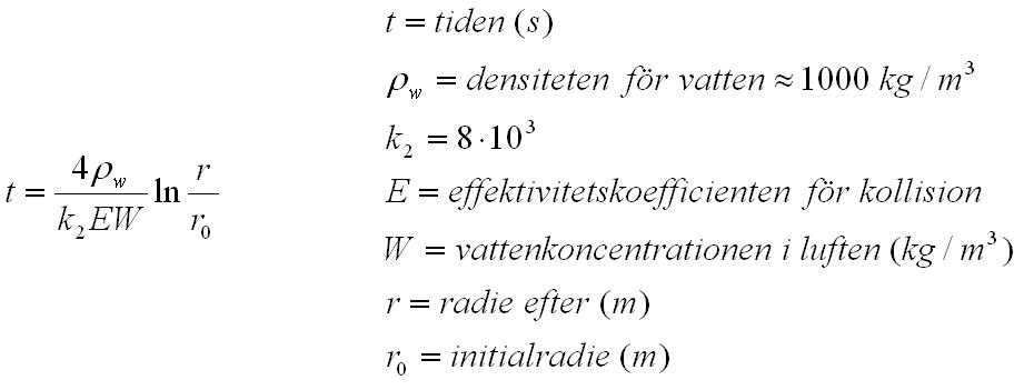 För att räkna ut en vattendroppes tillväxt kan man använda följande formel: