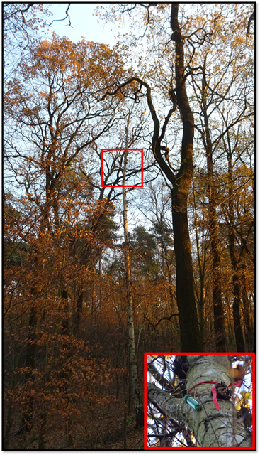 Nicht am Cacheträger, dem abgestorbenen Stamm, hochklettern!