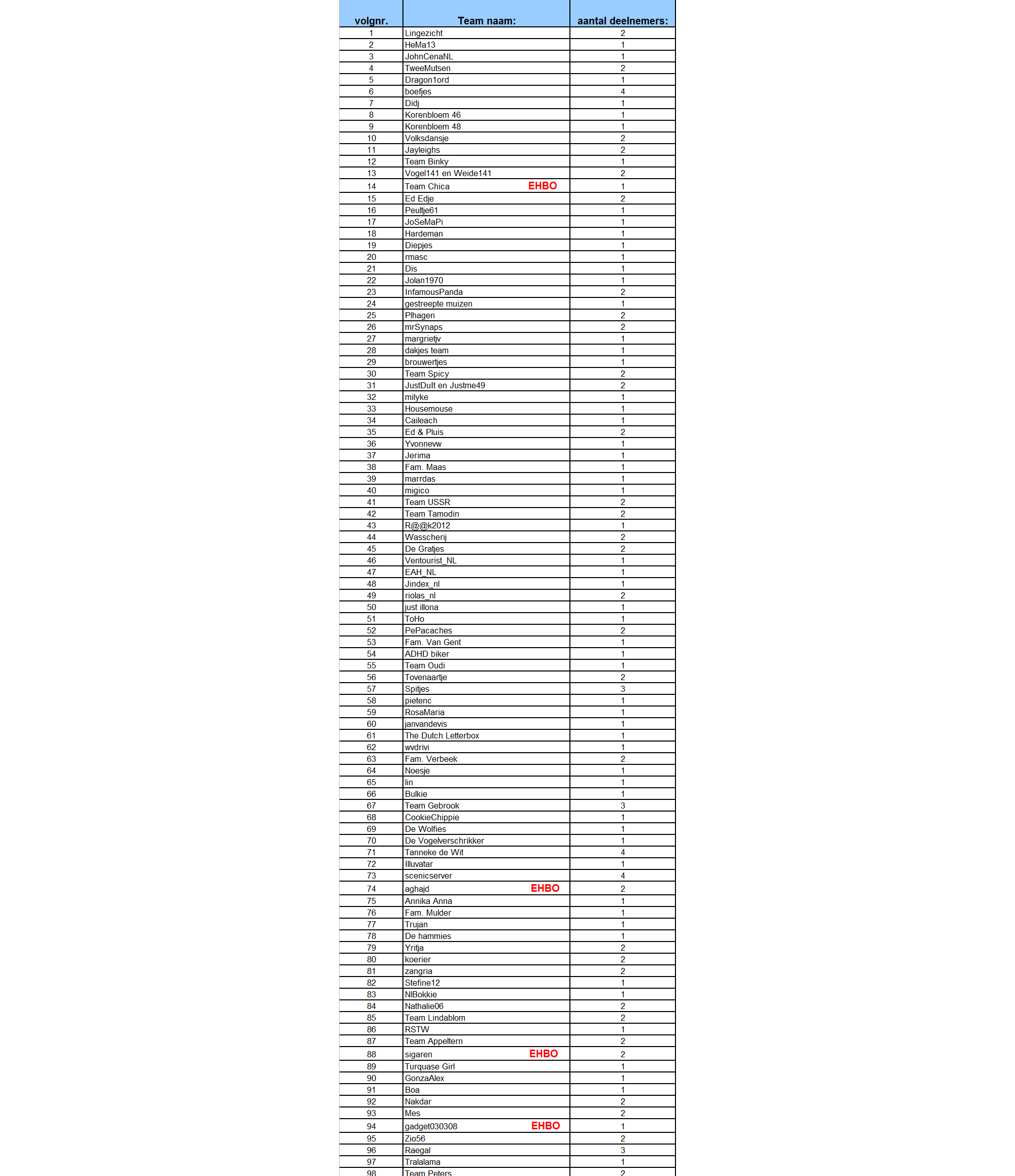 de lijst van deelnemers aan dit event.
