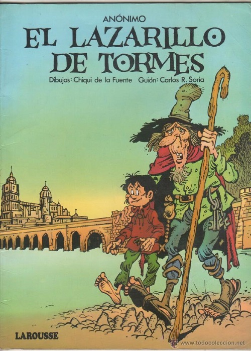 Y así me fui para mi amo, que esperándome estaba. Salimos de Salamanca, y llegando a la puente, está a la entrada della un animal de piedra, que casi tiene forma de toro, y el ciego mandóme que llegase cerca del animal, y allí puesto, me dijo: