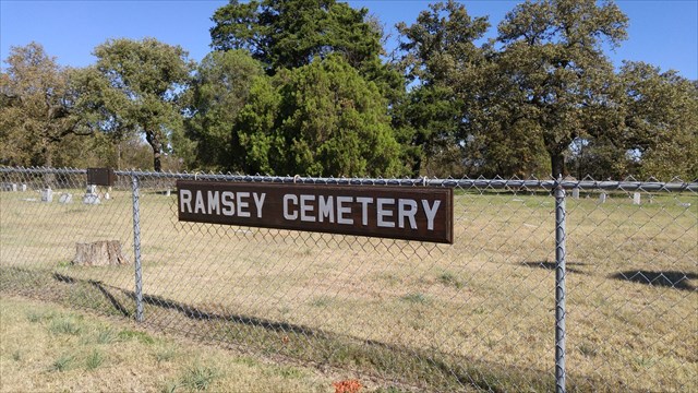 The nearby burial ground is named for william ramsey, who in 1836 formally deeded the land around several early graves as a cemetery. the oldest legible tombstone, dated 1862, bears the name rebecca henning. many burial sites are marked only with native stones. some of erath county's first pioneers and several war veterans any buried in ramsey cemetery. some of the pioneers and their descendants who are interred there are members of the _____, _____, _____, _____, _____, _____, mitchell, and wideman families.