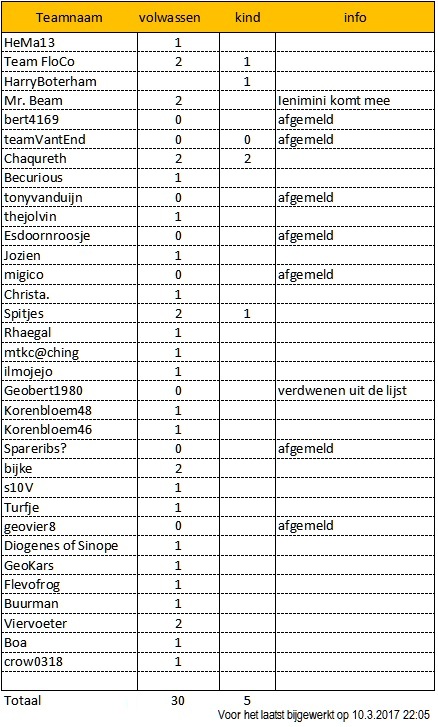 Hier is het deelnemers overzicht te bekijken.
