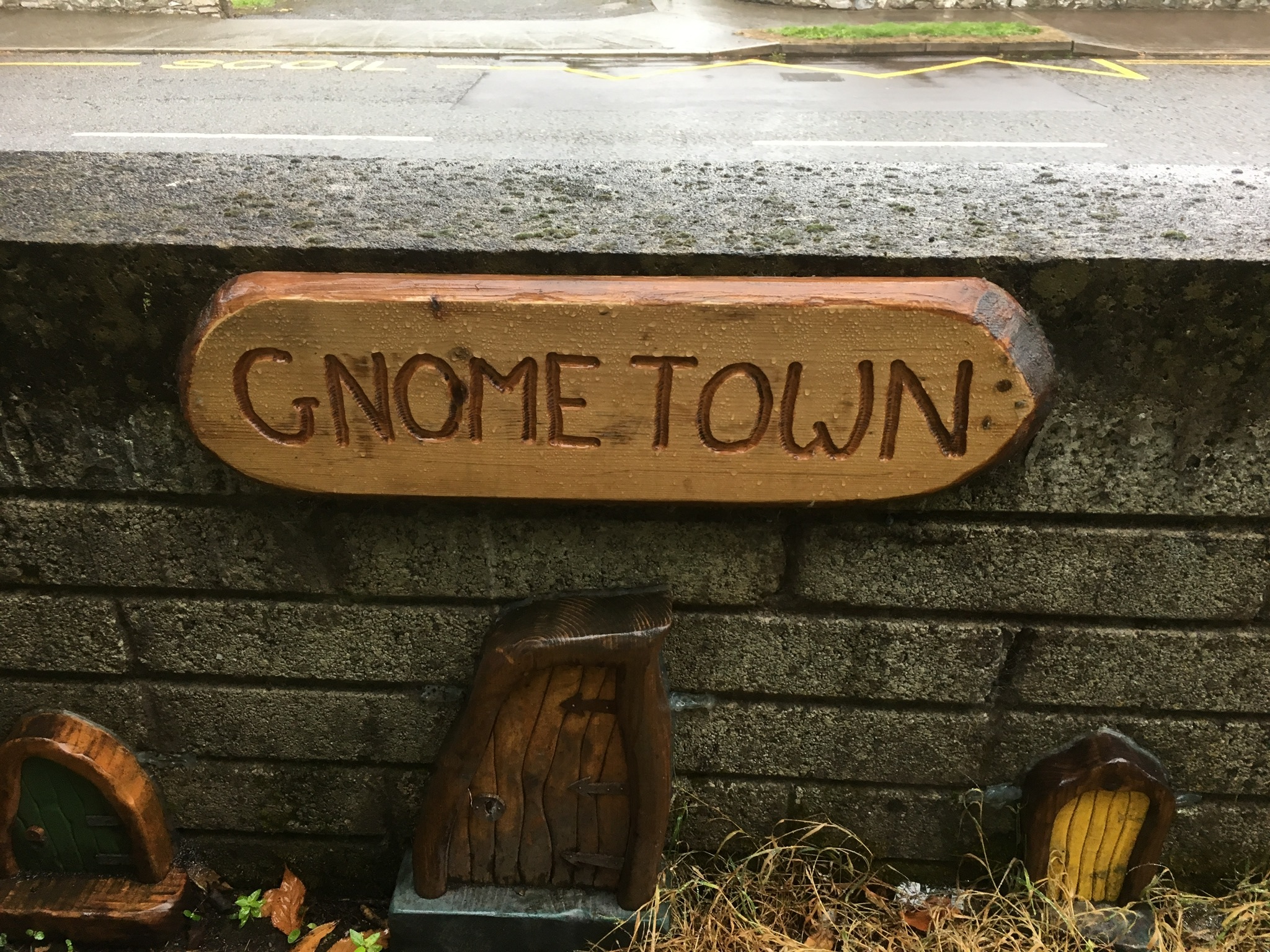 Number of small doors sitting on the wall to the right of the Gnome Town sign +2 = F