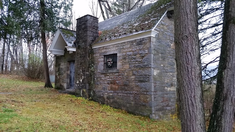 The 36th Rest 'n Peace - Centre County cache takes you to the old Boal Family burial ground behind the Columbus Chapel in Boalsburg, PA. This is a long disused cemetery consisting of just a few headstones, a memorial plaque, and a single crumbling tomb.