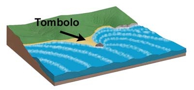Un tombolo est un cordon littoral de sédiments reliant deux étendues terrestres.
