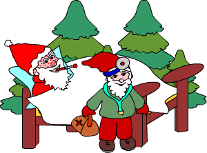 Obwohl der Weihnachtsmann Medizin schluckte und sich einen warmen Schal um den Hals wickelte, bekam er ein paar Tage vor Weihnachten doch noch Fieber und musste sich ins Bett legen.