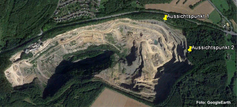 Seit August 2016 haben Wanderer bzw. interessierte Bürger die Möglichkeit, hier an zwei neu geschaffenen Aussichtspunkten mit je zwei Erläuterungstafeln einen nicht alltäglichen Einblick in den aktiven Steinbruch und in 360 Millionen Jahre Erdgeschichte zu werfen.