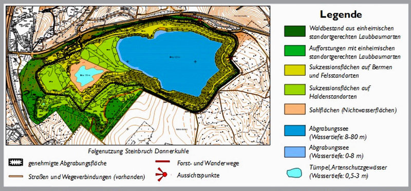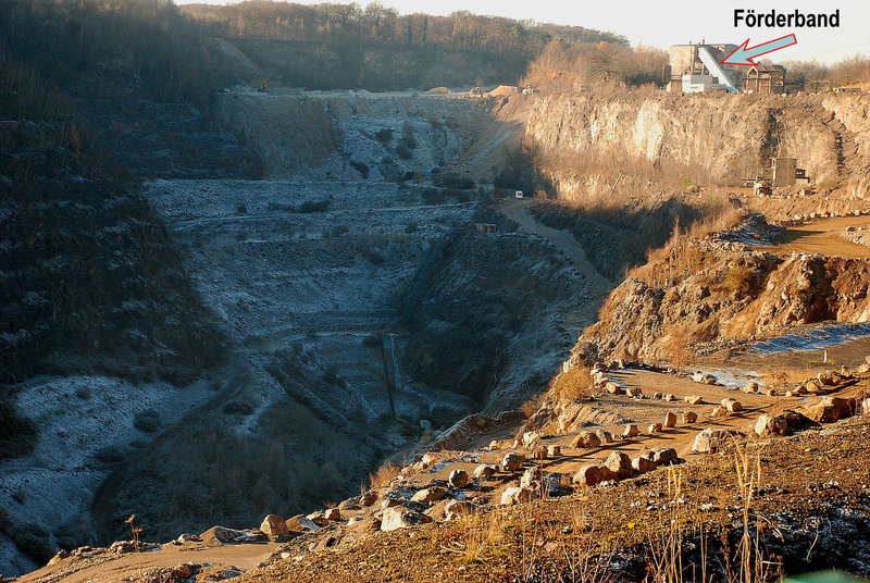Etwa um das Jahr 2040, wenn die Abbaugenehmigung erloschen ist, wird von diesem Einblick in die Erdgeschichte nur noch ein rekultiviertes Areal mit einem etwa 80 Meter tiefen Grundwassersee zu sehen sein.