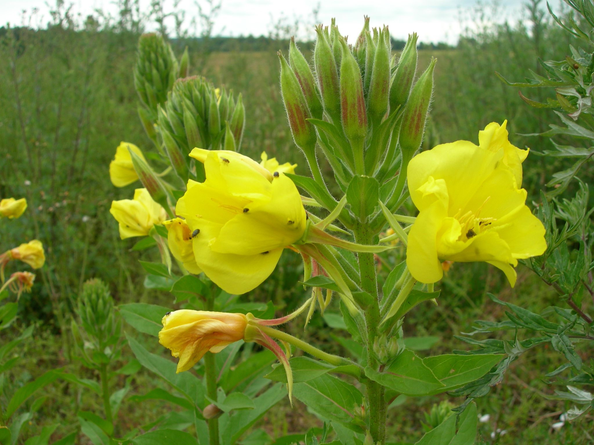 L’ONAGRE: Plante à tige dressée, anguleuse de 1 à 1,20 m portant de grandes fleurs couleur jaune soufre, l'onagre bisannuelle pousse généralement sur des sols assez sablonneux au soleil.
