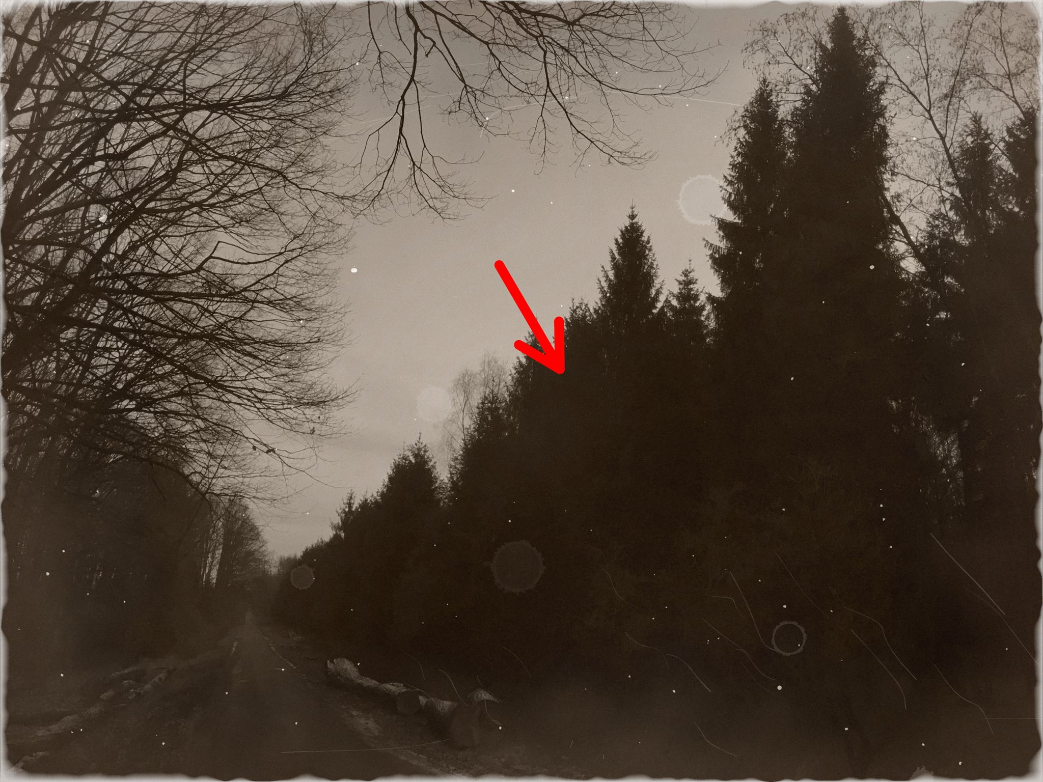 2.) Jdi na výchozí souřadnice, a omrkni fotografii v listingu, smrček na kterém vše "visí" máš označen šipkou.