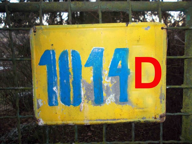 Na tabulce s číslem zahrádky zjistíte indicii 1014D.