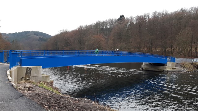 Lange Zeit stand an dieser Stelle eine alte ehrwürdige Brücke, welche die beiden Seiten der Wupper, und somit auch die Städte Ennepetal und Wuppertal, miteinander verband. Sie wurde jedoch Mitte 2013 wegen unlösbaren Problemen an der Holzkonstruktion geperrt und in der Folge abgerissen. Ein Neubau wurde geplant, der sich aber aus verschiedenen Gründen verzögerte. Im Spätherbst 2016 wurde die neue Brücke eingehoben und am 17.11.2016 dann nach nun über 3-jähriger Bauzeit für den Fussgängerverkehr freigegeben. Am 10.12.2016 wurde die Brücke offiziell eingeweiht. Das BLAUE WUNDER war geboren! So findet hier ein langwieriger Prozess sein Ende und nun können alle, die Lust haben, wieder einen schönen Spaziergang rund um den Beyenburger Stausee machen. Happy Hunting wünscht caching steppi