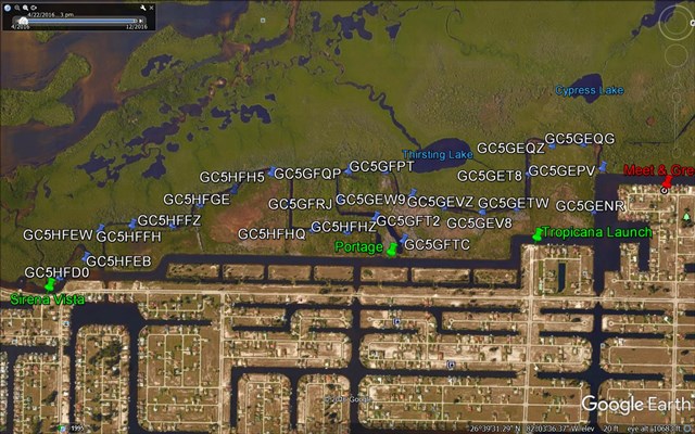 This is approximately a 3 mile paddle. Starting at Tropicana Launch with a portage back to the main spreader canal and returning to the Tropicana Launch. .
