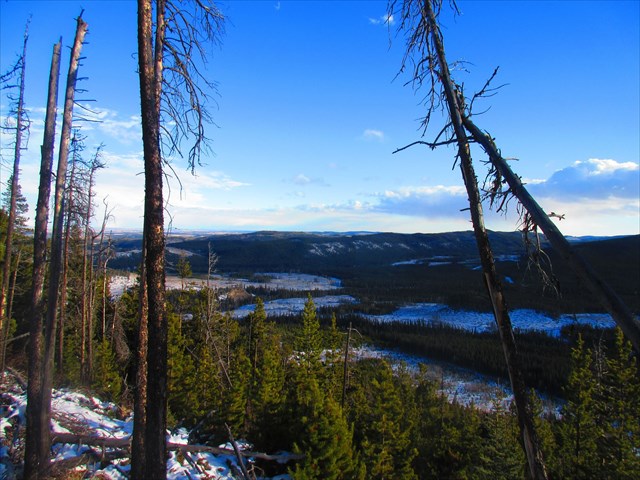 Once on the Tom Snow, head east to a junction. An road follows south, and crosses over an old rickety bridge. Choose a place to leave the road and hike up the north ridge of the hill. The deadfall is persistent and offers a constant challenge. Thankfully, most of the deadfall is only ankle to knee height and can be easily stepped over. Just keep following up to the summit where the views open to the south and east. Good luck!