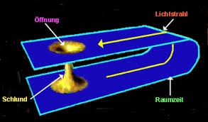 Dabei handelt es sich um theoretische Gebilde, die sich aus speziellen Lösungen (Kruskal-Lösungen) der Feldgleichungen der allgemeinen Relativitätstheorie ergeben. Erstmals wurden sie im Jahre 1935 von Albert Einstein und Nathan Rosen beschrieben. Daher auch der Name "Einstein-Rosen-Brücke"