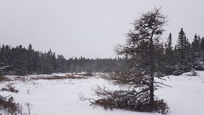 The cache is a 500mL wide mouth screw-top container, hidden in a winter friendly manner. Discretion is our motto at CtB!, and while this one is only a few metres off of the trail, the hide spot was chosen to be out of the way of a passing ATV... which actually occurred during placement. An ATV went by slowly, and no one knew there was a geocacher right there.