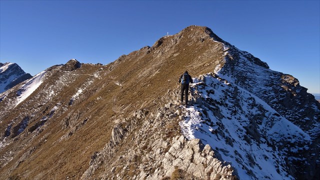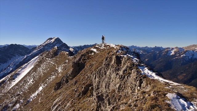 Wir sprechen über ca. 1200 Höhenmeter im Auf- und Abstieg. Der Grat ist nie extrem ausgesetzt. Man muss bis zum Gipfel die Hände eigentlich nicht an den Fels legen - evtl. aber kurz beim Geocache-Versteck.