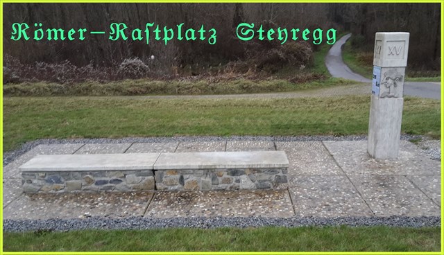 Die oberösterreichische Landesausstellung 2018 in Enns und entlang der Donau bis Passau wird sich thematisch auf den römischen Donau-Limes, die ehemalige Grenze des römischen Weltreiches, konzentrieren. Zu dieser Thematik passend, werden bis dahin zwischen Passau und Grein etwa 20 dieser Römer-Rastplätze errichtet, die aus einer an einen römischen Meilenstein erinnernden Sichtbetonsäule bestehen, einen vom Künstler Miguel Horn geschaffenen Römerkopf tragen und Informationen über die jeweilige Standort-Gemeinde, den Donauradweg und die Römer beinhalten. Weiters befindet sich an jedem dieser Rastplätze eine 5 Meter lange Rastbank aus Beton und Stein und einem befestigten Boden aus Donau-Kieselsteinen, wodurch die Plätze auch schwere Hochwässer überstehen sollen. Die Architektur ist an die Gestaltungselemente der Römerzeit angelehnt. Der Römer-Rastplatz bei Steyregg wurde als 2. seiner Art im April 2015 eröffnet.