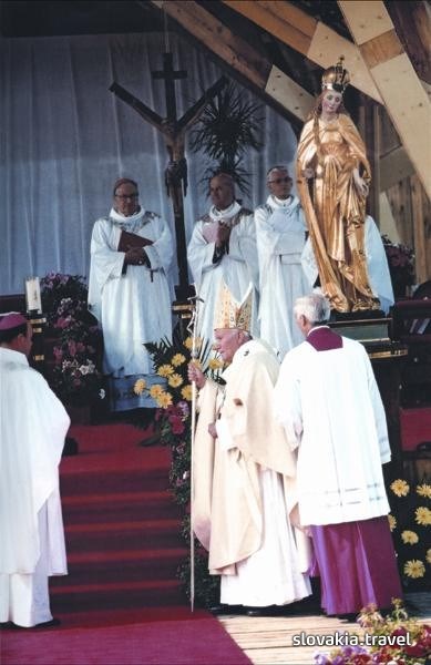 Pápež Ján Pavol II. (dnes už svätý) navštívil počas svojho pontifikátu Slovensko 3-krát. Počas svojej 2. návštevy navštívil aj toto významné pútnické miesto. Keška vás prevedie cestou, ktorou išiel Sv. Otec papamobilom a ukáže vám aj miesto, kde 3. júla 1995 slúžil sv. omšu.