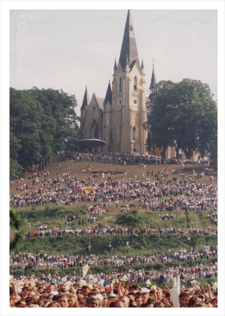 Pope John Paul II. (already saint) visited Slovakia three times during his pontificate. He visited this significant pilgrimage site on Marian hill during his 2th visitation of Slovakia. This geocache will show you the path, that the Holy Father used by popemobile, and the place, where he celebrated the holy mass on the 3rd July 1995.