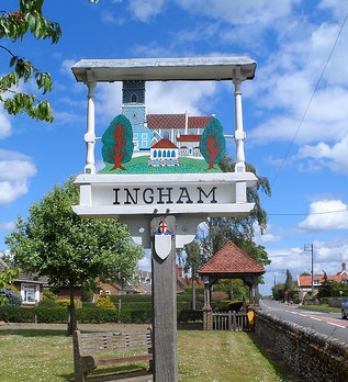Situated on a slight rise north of Bury St Edmunds the village has a large green, formerly including school playing fields to the east of the main road reached by a lane between the Church and the Post Office. Beyond the green lies the abandoned railway cutting - the line and Ingham railway station closed in the 1950s, though Ingham is still served by buses.