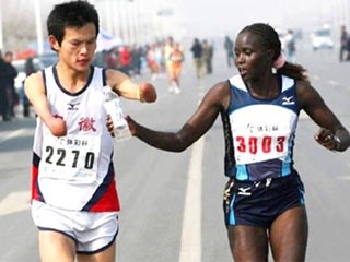 Jacqueline Nytepi Kiplimo – eine kenianische Spitzenläuferin – nahm ebenfalls an diesem Marathon teil und entdeckte den asiatischen Marathonläufer bei Kilometer 10 – völlig dehydriert (er konnte ja nicht trinken...).