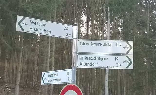 Wenn du von diesem Ort hier den Ulmtalradweg hoch bis zum Ende auf der Bahntrasse gehst, drehst in Beilstein um, gehst an diesem Ort vorbei bis hin zum Schützenhaus Biskirchen, kehrst da wieder um und kommst genau HIER hin zurück, so hast du ungefähr eine Strecke von 28 Kilometer zurück gelegt. Oder du läufst von Allendorf nach Wetzlar – sind auch 28 km, wie dir der Wegweiser vor Ort sagt.