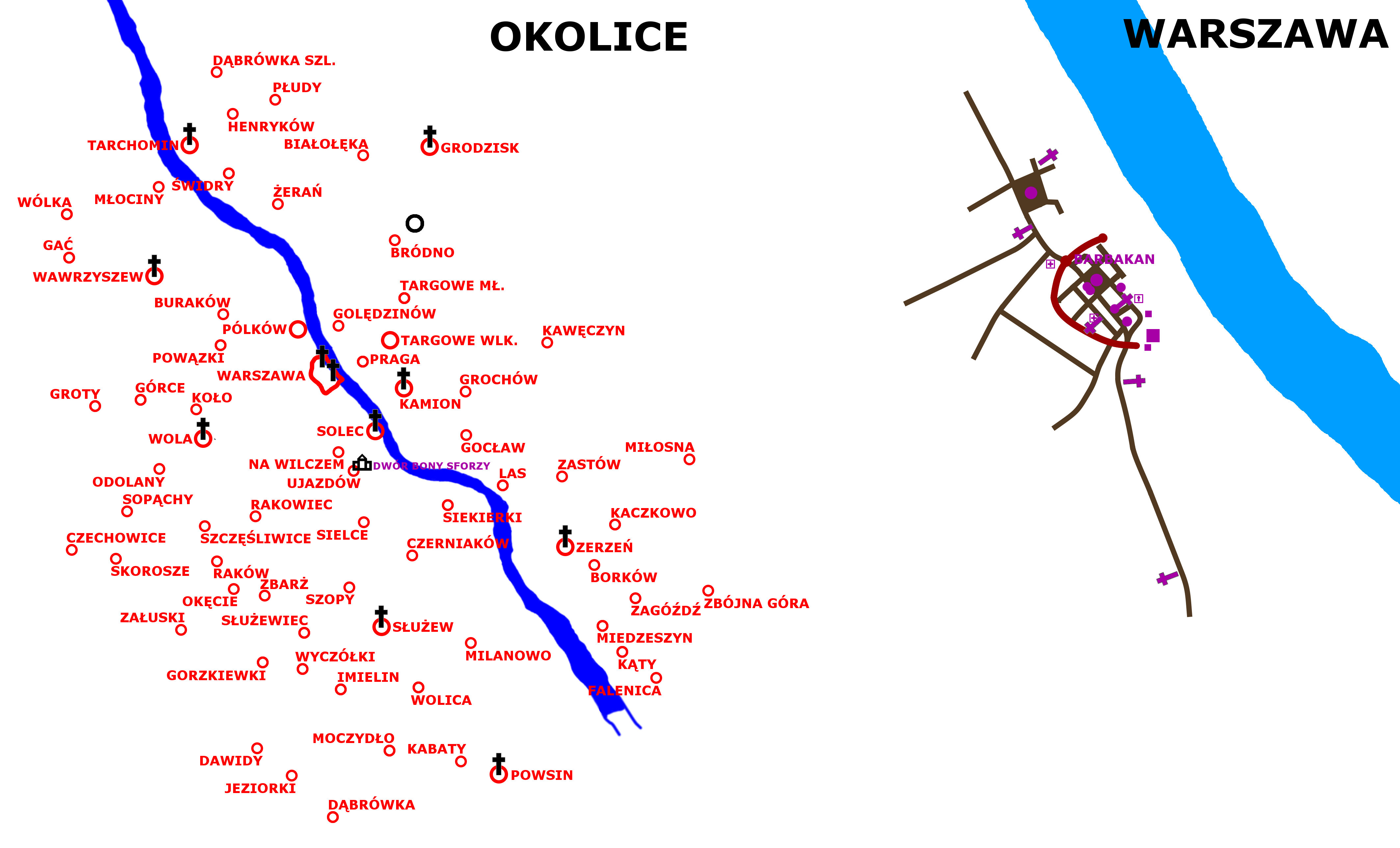 In the mid-16th century Warsaw experienced a brief period in its history, when the city served no important political or geographical functions – it was only one of many small towns of the Polish Kingdom. The king Zygmunt Stary didn't get much interest about the city, but after his death in 1548 the widow Queen Bona Sforza settled down here, in the court in Ujazdów. It was a place where the sister of the last Mazovian Dukes – Anna – used to live, but she left Mazovia due to a conflict with the King Zygmunt Stary. Place on the throne took his son Zygmunt II August, selected vivente rege. Despite this a little has happened in Warsaw – the most significant investment was the completion of the city defensive walls. In 1548 the Barbicane was built, designed by Giovanni Battista of Venice – this massive Gothic building got the shape of a semi-circular bastion supported on the pillars of a bridge over a dry moat, with shooting loopholes inside and outside the building. The Barbicane got a drawbridge, a door frames, lowerable bars and the layout making defense easier – for example the main gate has been situated diagonally to prevent the Old Town streets from a devastating shot through the Barbicane. However, beacuse of the firearms and artillery development, the Barbicane was then an anachronistic object. But its top was crowned by a Renaissance attic – probably the first architectural element in this style in Warsaw. In 1544 a devastating fire destroyed part of the Old Town Market Square, but except for this, the city was developing. At the 6 Jezuicka St. the Bishops of Poznań, the religious supervisiors of the Warsaw parish, built a tenement for itself (1547), and at the Old Town Market Square another houses were rebuilt, like No. 21 for Wilczek family (1552) or No. 27 for Jerzy Korb (1552). He managed to create a great Gothic architecture to that building, including decorative façade, huge ground floor and extended basements, he also managed his daughter to marry to Michał Fukier – who was an ancestor of the famous Fukier family. The Warsaw Collegiate Church was also gradually expanded – it got a front tower and a new interior with tombstones, altars and chapels. In 1552 the St. Martin Church was reconstructed – at that time it was a place where the Mazovian general assemblies took place. Outside Warsaw the most important event happened in the village called Wawrzyszew – in 1542 a new parish of St. Mary Magdalene was founded at the wooden church, and from 1543 to 1548 a brick church has been constructed there – and it is preserved until today. The founder was a royal phycisian, chemist and charlatan Baltazar Smosarski – it is suspected he wished to stop suspicions of poisoning the last Mazovian Dukes. Soon after the Queen-widow Bona Sforza left Warsaw forever.