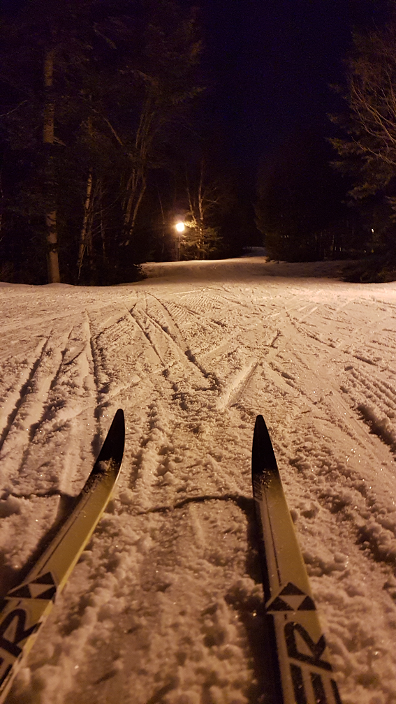 So over the last week or so, we've fallen in love with night skiing at Pippy Park. There may not be a lot of snow, but there is more than enough to enjoy the loops of the campground on our cross country skis.