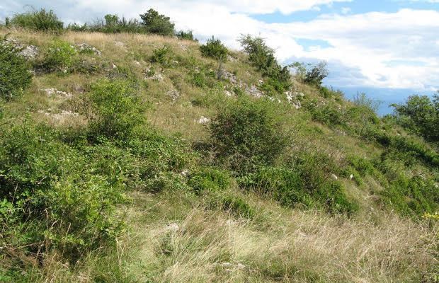 Le calcaire est drainant quand sa structure est lâche ou micro-drainant par capillarité, mais il présente toutefois une asssez bonne capacité à retenir l'eau. Ainsi la faune (rapaces, petits mammifères, gastéropodes, reptiles et amphibiens, insectes : notamment zygène du trèfle et papillon bleu azuré) et la flore présentes sur ce côteau très pentu parviennent-elles à subsister sur ce type de milieu sans sources ni point d'eau même en période de sécheresse. L'irrigation naturelle que sont la rosée et les pluies suffisent à la survie de cette lande calcicole bien qu'en période de chaleur l'été elle roussisse, devenant plus vulnérable aux incendies qui dévastent régulièrement cette colline. Le sylvopastoralisme aide à lutter contre ces incendies répétés.