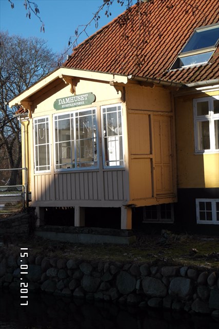 Bag træerne til højre for Damhuset aner man en høj gammel fabriksbygning. Det er den tidligere Dansk Gardin & Textil Fabrik, der blev opført i 1892ff. Fabrikant Chr. Hasselbalch var den første i Danmark, der begyndte at fremstille det tynde stof til gardiner, som hidtil var blevet importeret fra England. Gardinfabrikken var en overgang Lyngbys største arbejdsplads. I dag rummer bygningerne en række mindre virksomheder.